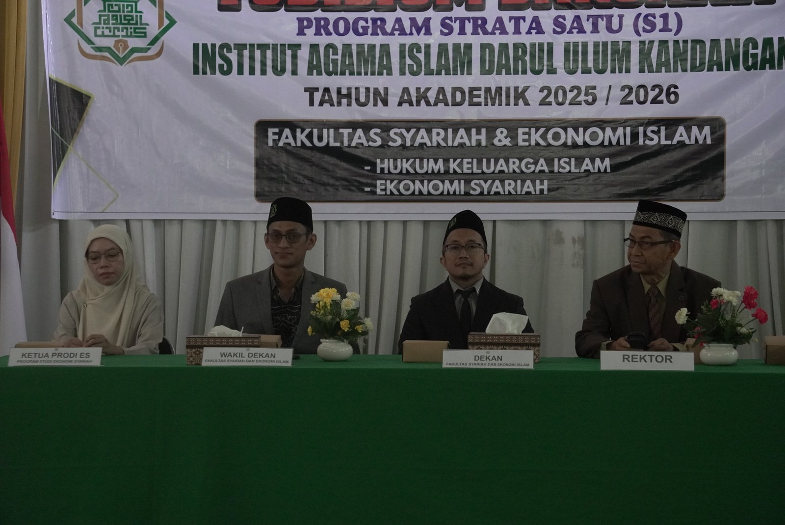 Kegiatan ini dihadiri oleh Rektor IAI Darul Ulum Kandangan, Dr. H. Mukhsin Aseri, M.Ag., M.H, Wakil Rektor II, Dr. Diny Mahdany, M.Pd.I., Dekan Fakultas Syariah dan Ekonomi Islam, Dr. Muhammad Bahram, S.H.I., MH., Wakil Dekan, Muhammad Iqbal Sanjaya, S.H.I., MSI., Serta para Ketua Program Studi (Hukum Keluarga Islam dan Ekonomi Syariah), Akhmad Fauzan, S.H., MH., dan Norwilistini, S.E., M.E.